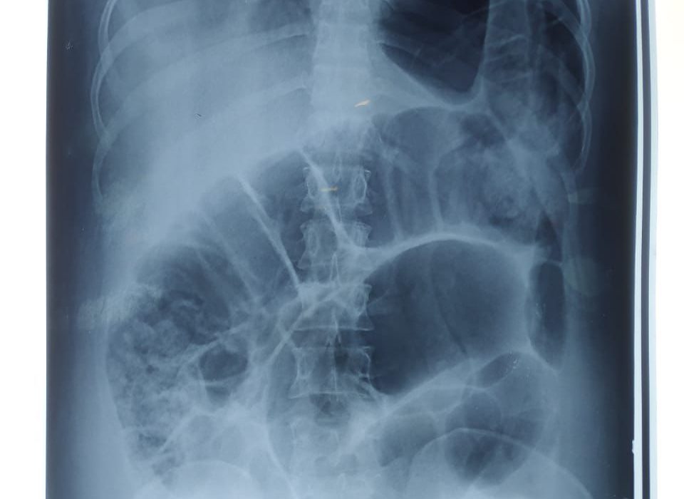 Second x-ray – Done in erect posture showing lumen of intestine up to the upper zone of left lung.